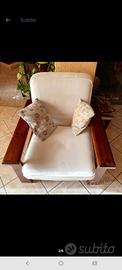 Salotto completo in legno massello, fodera originale perfetta a quadretti, più fodere bianche, dispongono anche di diversi rivestimenti di colore giallo, fantasia e bianco, più tavolino. Altre foto visibili su altro annuncio pubblicato.