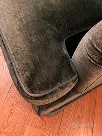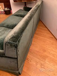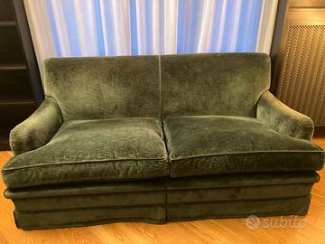 Salotto in velluto di lino color verde inglese così composto: divano tre posti (cm 240)e divano due posti (cm180 ) la pfindita dei due divani e’ cm 97 ed altezza 83cm seduta altezza 45 cm. Struttura in legno ,rivestimento fisso.I cuscini con imbottitura in piuma d’oca sono sfoderabili e profilati in canete’ come ogni cucitura della scocca . Il ritiro è in Magenta (Mi)