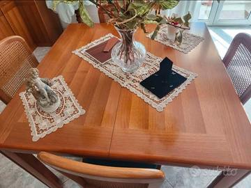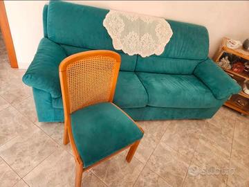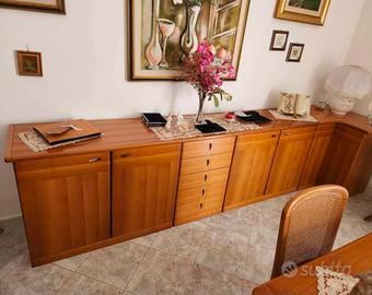 Vendo set completo di arredamento da salotto/soggiorno, composto da mobili in legno(ciliegio, finitura lucida) e sedute in stile classico coordinato, tutti in OTTIME condizioni: 🔹 Inclusi nel prezzo: • Credenza angolare in legno, con 6 ante e 6 cassetti • Tavolo in legno estensibile (quadrato/allungabile) • 6 sedie in legno con paglia di Vienna e seduta imbottita verde petrolio • Divano letto matrimoniale, 3 posti in tessuto effetto velluto verde petrolio, in ottimo stato VENDIBILE ANCHE SINGOLARMENTE: •CREDENZA: 100€ •TAVOLO con SEDIE: 150€ •DIVANO LETTO:150€ 🎨 Il set è completamente coordinato, ideale per chi cerca un arredamento armonioso, elegante e pronto all’uso. 📌 Oggetti decorativi presenti nelle foto non inclusi. Vantaggi per chi compra tutto: • Arredamento pronto e armonico per salotto/soggiorno • Stile classico elegante, materiali robusti • Ottime condizioni generali • Coordinamento tra imbottiti e mobili in legno. Salotto completo coordinato – tavolo, sedie, credenza, divano. Ritiro e smontaggio a carico dell'acquirente. Contattami per maggiori informazioni o per visionare.