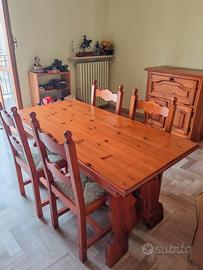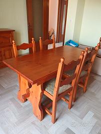 Salotto completo, mobili in legno massello Camera completa di tavolo e 4 sedie. Tutto fatto artigianalmente in Val Varaita. Tavolo 1,50mt x75 mobiletto h1. 00x l90x p50, armadio divano l3.80x h2.50 x p60+40 zona divano (materasso nuovo).Dovete solo smontarvela e portarla via...