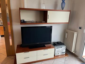 - Tavolo allungabile con 6 sedie - Vetrina con ante scorrevoli - 2 Mobili sospesi - 1 Mobile porta-tv - Armadio guardaroba con vetrinetta Pezzi vendibili anche singolarmente