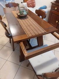 arrendamento completo! tavolo in legno massello allungabile con 6 sedie ; credenza in legno massello 3 ante in vetro, 3 ante chiuse, 4 cassettini e 3 cassetti; mobile per ingresso con 2 ante e ripiani; tavolino porta TV in legno massello. Ritiro a carico dell'acquirente.