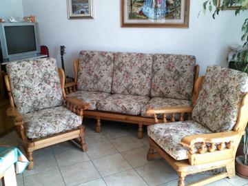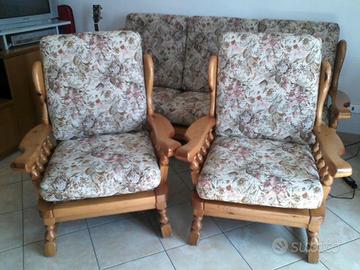 salotto rustico motivo floreale ..in legno massiccio c/ braccioli lavorati. Divano mt 2 prof.83 poltrona larg 80 prof 83