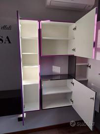 Salotto componibile. Totale di 8 mobiletti (3 cubi e 5 colonne). Disponibile anche mensola da parete grigio scura e tavolino quadrato. Il salotto è usato e potrebbe presentare qualche segno d'usura. Già smontato dalla parete. Ritiro a carico dell'acquirente. Urgenza di liberare spazio per cambio arredamento. Leggermente trattabile.