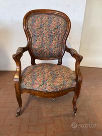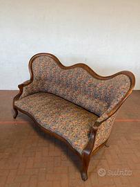 Salotto composto da un divano e due poltrone in noce massello stile Luigi Filippo realizzato nei primi del ‘900. Rivestimento in stoffa e umbottitura restaurati recentemente. Ottime condizioni