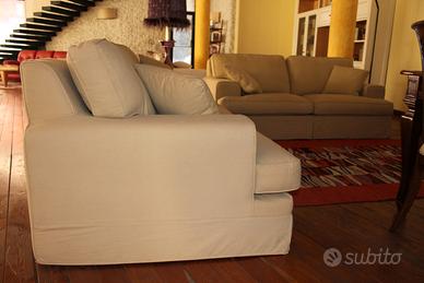Coppia di divani in tessuto made in Italy (TreCi) colore beige come da foto completamente sfoderabili