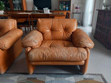 Salotto Coronado design Tobia Scarpa C&B Italia anni 70 composto da divano tre posti e due poltrone in pelle il tutto in buone condizioni generali con segni di usura.