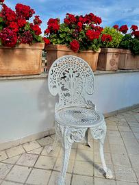 Vendo per inutilizzo questo delizioso set di mobili da giardino, composto da un divano a tre posti e una sedia singola, entrambi in ferro battuto verniciato bianco.