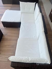 Vendo causa trasferimento, come nuovo, tenuto benissimo, salotto da esterno componibile a proprio piacimento con chaise longue con cuscini imbottiti e sfoderabili, Tavolino con ventro temperato bicolore Non spedisco