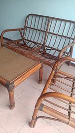 Set da giardino in rattan/bamboo composto da 2 poltrone, 1 divano e 1 tavolino. Ritiro Santena