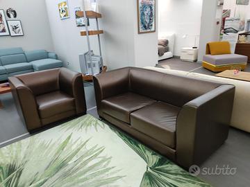 Coppia di divani in pelle e coppia di poltrone in pelle modello Matisse metal brown come foto . Dimensioni extra large poltrona cm.100x84x82 e divano 2 posti cm.185x84x82 . Struttura in faggio con cinghie elastiche e imbottitura in schiumato - cocco e crine. Disponibile 1 set completo di 4 pezzi (02 divani da 2 posti large e 02 poltrone maxy) Prodotti di alta gamma rinvenienti da set fotografici.