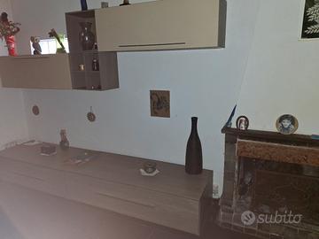 Divano tre posti un tavolinetto da salotto due poltrone due mobili a muro e due mobile a terra