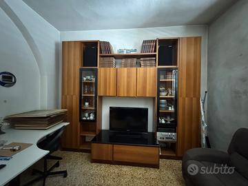 Vendo mobili in blocco o singoli. Mobile libreria senza televisione,tavolino in vetro e marmo scrivania e sedia girevole divano e poltrona adatta a persona anziana. Smontaggio e trasporto a carico dell’acquirente per misure e prezzo contattarmi in privato