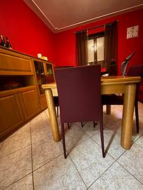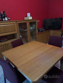 Vendesi sala da pranzo in legno massiccio comprensiva di mobile angolare smontabile,vetrina,tavolo apribile allungabile fino a 10 persone e 4 sedie.