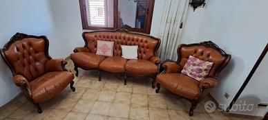 Salotto in pelle anni '70. In buone condizioni composto da divano 3 posti e 2 poltrone.