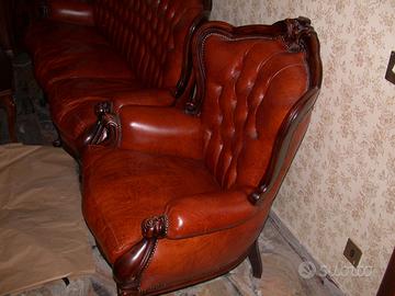 Salotto in pelle completo composto da: divano (3 posti), due poltrone e tavolino. Tutti i componenti sono in perfette condizioni e usati pochissimo. Disponibilità alla visione preventiva. Prezzo poco trattabile. Trasporto a carico dell'acquirente
