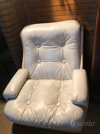 Salotto in pelle bianca composto da divano ,poltrona e puffo. ( salotto non comune ma molto importante come arredamento. Usato solo come arredamento.