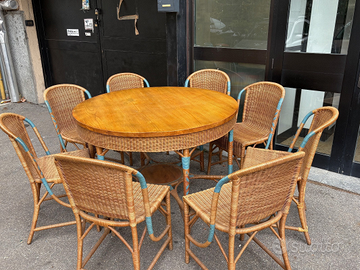 Grande e bellissimo set da giardino, produzione artigianale italiana degli anni '60, in rattan.