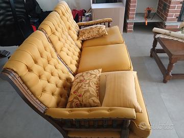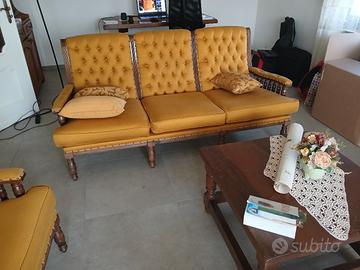 Vendesi salotto in stile anni 70 in perfette condizioni , divano, due poltrone rifoderare tre anni fa, tavolino basso in stile rustico. tutto a euro 500