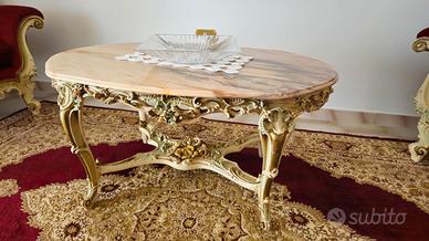 Bellissimo salotto in stile barocco veneziano composto da divano tre posti, due poltrone, tavolino con piano in marmo. Tutto in ottime condizioni. Vendesi per ristrutturazione casa e cambio arredo. Trasporto a carico dell'acquirente.