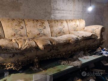 Vendo magnifico e completo salotto in stile Barocco di pregiata fattura, stile fine dell'Ottocento, in ottimo stato. Una soluzione d'arredo di grande impatto visivo e di alta ebanisteria, perfetta per impreziosire un salone di rappresentanza o un ambiente dal gusto classico e ricercato.