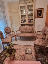 salotto in stile Luigi xv composto da 5 pezzi più tavolino in stile con marmo di onice