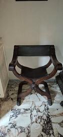 •Sedia Savonarola cm 70 x 57 x 86 (L x P x A schienale), altezza della seduta cm 48, con gambe scolpite, sedile e schienale in cuoio nuovo, sostituito recentemente