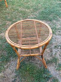 Salotto in vimini anni '70 composto da: 1 sedia a dondolo, 1 poltrona ( + 1 con una stecca mancante), 1 tavolino.