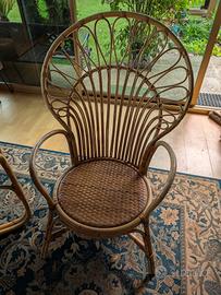 Prezioso set salottino in vimini composto da tavolo con diametro da 106cm e 4 poltrone con seduta comoda ed abbondante.
