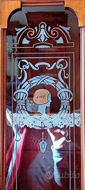 Divanetto stile Liberty primi '900 con 2 poltrone, vetri decorati molati e intarsi in madreperla, ottimamente conservato e restaurato pochi anni fa. Da ritirare in loco. Anche vendibile eventualmente in combinazione con tavolo, sedie e credenza per una sala completa.