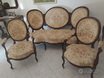 Composto da 1 divano, 2 poltrone, 2 sedie.