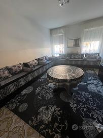 2 tappeti 3x2m,mobile in angolo che fa da contenitore,tavolo,set da 2 divani 3m e 4m totale 7 m con anche cuscini. Salotto marocchino completo