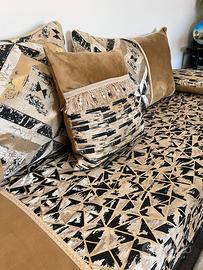 Vendo bellissimo salotto marocchino dai colori eleganti beige, nero e oro, ideale per arredare il soggiorno con uno stile raffinato e accogliente. Il salotto è composto da: • 2 divani • 4 cuscini grandi • 4 cuscini rettangolari • 2 cuscini quadrati Condizioni: usato pochissimo, tenuto molto bene Perfetto per salotto,