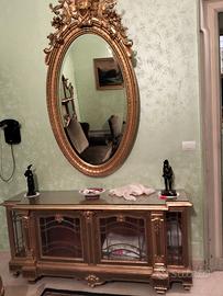 -specchiera ovale cesellata con ricca cimasa sovrastante (90 x 180)