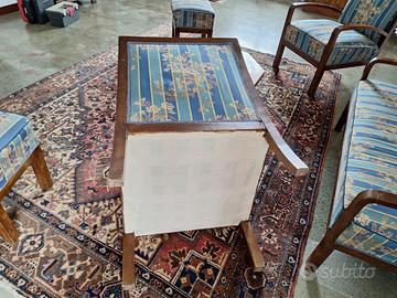 Vendo salotto originale anni ‘20 - fodere e imbottitura rifatte negli anni ‘90. Comprende 1 divanetto, 2 poltrone, 2 pouf. Prezzo da concordare