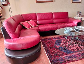 Grande salotto in vera pelle la seduta color bordeaux,e piccoli difetti sulla parte marrone scuro