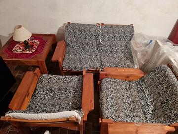 bellissimo salotto rustico ideale per case in montagna, composto da due poltrone, un divanetto per due persone e un tavolino ritiro a Prali valuto offerte o scambi