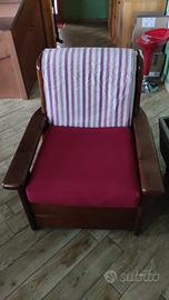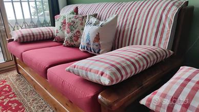 In ottimo stato, recentemente riverniciato e interamente ritappezzato. Salotto rustico composto da 2 divani (di cui uno letto matrimoniale e l'altro con contenitore) e due poltrone in legno massello. Vendibili anche separatamente.