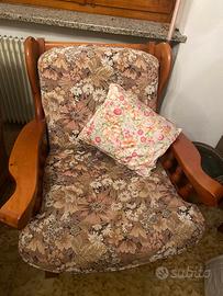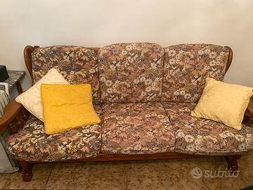 Vendo salotto rustico in legno in buone condizioni, composto da: 1 divano, 2 poltrone, 1 armadio/credenza, 1 tavolino.