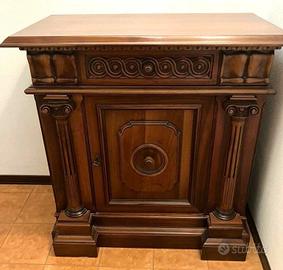 Mobile tipo "madia" in legno massello, intagliato con motivi a onde e colonne scanalate ai lati