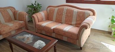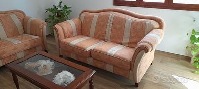 salotto in stile retro' , composto da due divani, tre e due posti più tavolino vetrinetta , tutto in ottimo stato. I divani in questione sono comodissimi fatti a mano e comprati in mobilificio ( no mondo convenienza no conforma, già al tatto si capisce la qualita') si cedono solo per cambio arredamento, solo il divano 3 posti pagato 2400 euro