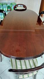 vendo per ristrutturazione tavolo e 6 sedie(da ritapezzare) in legno mogano stile inglese. Non perditempo