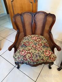 Vendo elegante salotto in stile Luigi XV, composto da 1 divano a due posti e 2 poltrone, in legno massello con schienali e fianchi in paglia di Vienna.