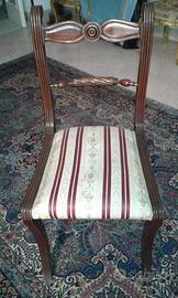 Salotto completo in stile veneziano – divano e 6 sedie in legno massello Proponiamo elegante salotto in raffinato stile veneziano, composto da divano a due posti e sei sedie coordinate, realizzati in legno massello con lavorazione artigianale e linee sinuose tipiche della tradizione classica italiana. Il divano presenta braccioli curvi e struttura finemente sagomata, con schienale leggermente mosso che ne esalta l’eleganza. Le sedie, perfettamente abbinate, riprendono lo stesso stile con schienali lavorati e dettagli torniti di pregio. Rivestimento in tessuto decorato a righe nei toni del beige e bordeaux con motivi floreali, in buone condizioni generali, che dona armonia e continuità all’intero ambiente. Un insieme ideale per arredare con gusto salotti classici, studi professionali, dimore d’epoca o strutture ricettive di charme. Caratteristiche: - Struttura in legno massello (mogano) - Lavorazione artigianale - Set completo coordinato (divano + 6 sedie) - Buono stato di conservazione - Stile veneziano Prezzo richiesto: €3.000 trattabili Disponibile alla visione. Possibilità di vendita anche separata. ---