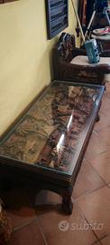Salotto tailandese con 3 poltroncine e una banchetta, tavolino e bar