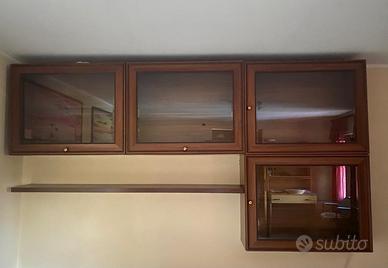 Vendo salotto in legno con vetrine e tavolo in vetro.