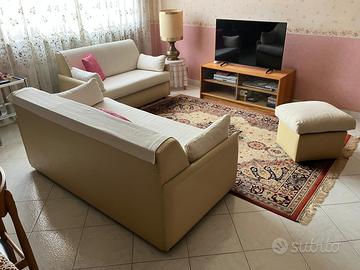 Divano letto a tre posti 167x93x75 . Divano due posti 132x80x75. Puff. Colore ecru. Si trova al 3° piano di un palazzo con ascensore.