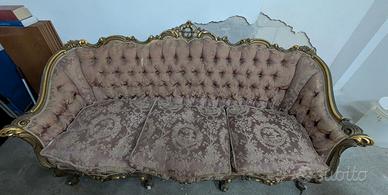 Salotto da restaurare. Poltrona più divano tre posti. Ritiro esclusivamente a mano.