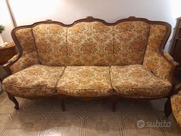 Vendesi due poltrone singole in coordinato vintage in stile Luigi XV/rococò (larghezza max 70 cm. ca.). Struttura in legno massello intagliato e rivestimento damascato floreale. Discrete condizioni estetiche complessive (come da foto). Ideale per chi cerca un insieme coordinato dal carattere classico nonché per restauro/rifoderatura. OFFERTA LIBERA. Ritiro a carico acquirente a Roma, zona San Giovanni, ENTRO QUESTO FINE SETTIMANA.