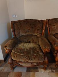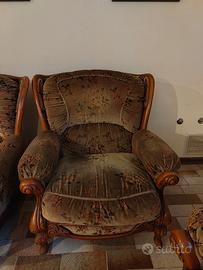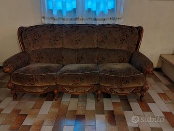 Salotto vintage in velluto rasato composto da divano a 3 posti e due comode poltrone. Tappezzeria con motivo floreale.